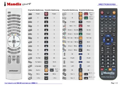 Ein Dokument ist enthalten, um die Verwendung der neuen Fernbedienung zu erleichtern, indem es die Tastenbelegung zeigt.