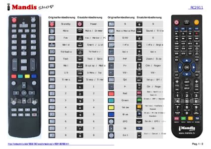 Ein Dokument ist enthalten, um die Verwendung der neuen Fernbedienung zu erleichtern, indem es die Tastenbelegung zeigt.
