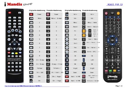 Diese Fernbedienung ersetzt Ihre RG405PVRS3 in vollem Umfang und bietet alle Funktionen des Originals.