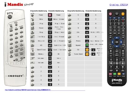 Diese Fernbedienung ersetzt Ihre AUTORAMA (CR 2314) in vollem Umfang und bietet alle Funktionen des Originals.