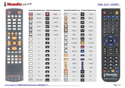 Ein Dokument ist enthalten, um die Verwendung der neuen Fernbedienung zu erleichtern, indem es die Tastenbelegung zeigt.