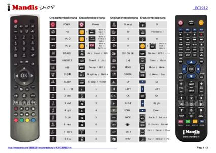 Ein Dokument ist enthalten, um die Verwendung der neuen Fernbedienung zu erleichtern, indem es die Tastenbelegung zeigt.