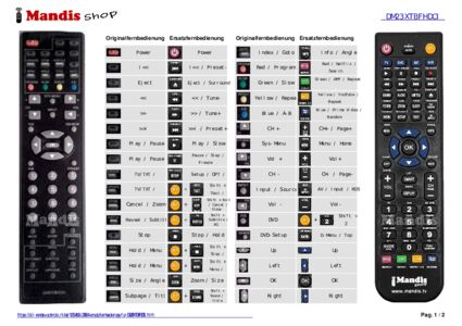 Ein Dokument ist enthalten, um die Verwendung der neuen Fernbedienung zu erleichtern, indem es die Tastenbelegung zeigt.