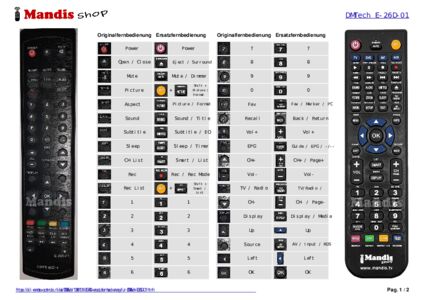Ein Dokument ist enthalten, um die Verwendung der neuen Fernbedienung zu erleichtern, indem es die Tastenbelegung zeigt.