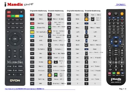 Ein Dokument ist enthalten, um die Verwendung der neuen Fernbedienung zu erleichtern, indem es die Tastenbelegung zeigt.