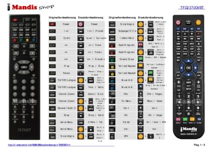 Ein Dokument ist enthalten, um die Verwendung der neuen Fernbedienung zu erleichtern, indem es die Tastenbelegung zeigt.