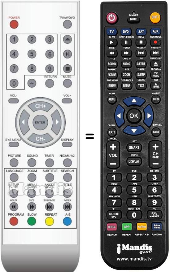 Es handelt sich jedoch nicht um eine Universalfernbedienung sondern um eine Fernbedienung die das Original ersetzt.