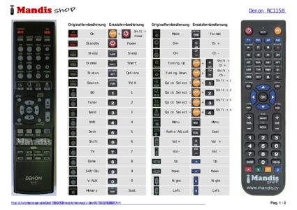 Diese Fernbedienung ersetzt Ihre RC-1158 (307010089008D) in vollem Umfang und bietet alle Funktionen des Originals.