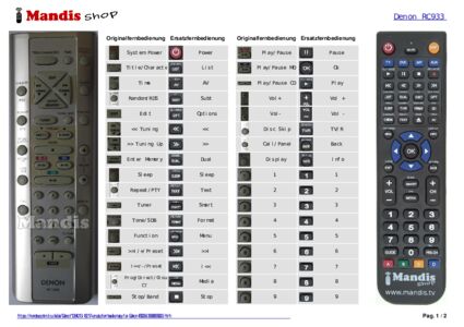 Diese Fernbedienung ersetzt Ihre RC933 (3990855003) in vollem Umfang und bietet alle Funktionen des Originals.