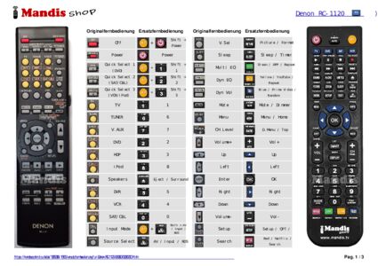 Im Folgenden zeigen wir Ihnen die Zuordnung jedes einzelnen Knopfes der Originalfernbedienung zu der Taste, die dieselbe Funktion auf der Ersatzfernbedienung ausführt. In einigen Fällen müssen Sie möglicherweise die UMSCHALT-Taste drücken, bevor Sie eine andere Taste drücken, um bestimmte Aktionen auszuführen. Diese zusätzlichen Funktionen werden oft wenig genutzt und dienen dazu, das Verständnis der Ersatzfernbedienung zu erleichtern oder weil die Originalfernbedienung mehr Tasten hat als das entsprechende Modell.