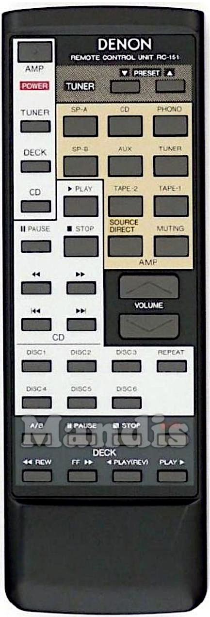 Home > Marken > Fernbedienungen Denon > Originalfernbedienung DENON RC-151 (4990232007)