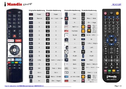 Ein Dokument ist enthalten, um die Verwendung der neuen Fernbedienung zu erleichtern, indem es die Tastenbelegung zeigt.