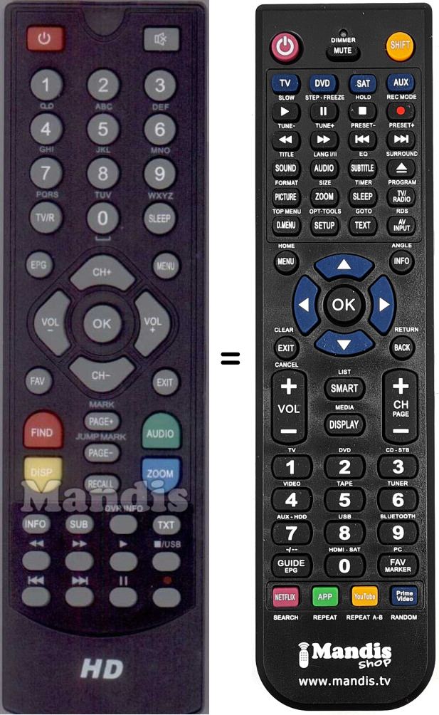 Es handelt sich jedoch nicht um eine Universalfernbedienung sondern um eine Fernbedienung die das Original ersetzt.