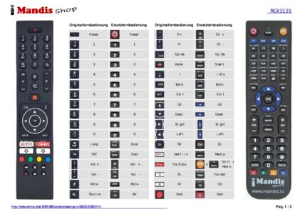 Diese Fernbedienung ersetzt Ihre RC43135 (30100814) in vollem Umfang und bietet alle Funktionen des Originals.