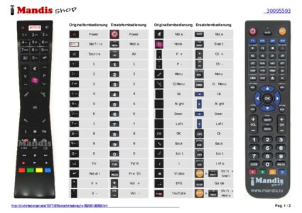 Ein Dokument ist enthalten, um die Verwendung der neuen Fernbedienung zu erleichtern, indem es die Tastenbelegung zeigt.