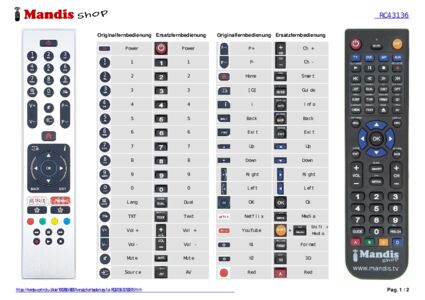 Diese Fernbedienung ersetzt Ihre RC43136 (30100818) in vollem Umfang und bietet alle Funktionen des Originals.