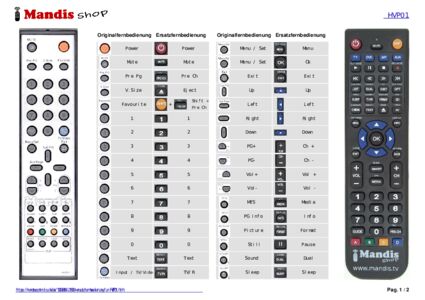 Ein Dokument ist enthalten, um die Verwendung der neuen Fernbedienung zu erleichtern, indem es die Tastenbelegung zeigt.