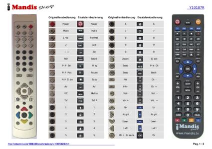 Ein Dokument ist enthalten, um die Verwendung der neuen Fernbedienung zu erleichtern, indem es die Tastenbelegung zeigt.