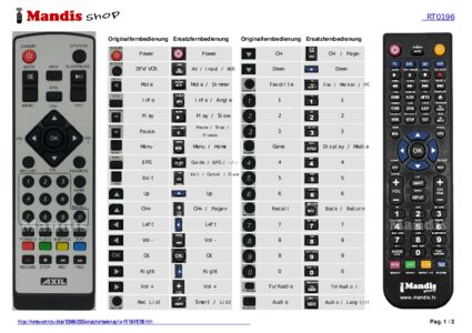 Diese Fernbedienung ersetzt Ihre RT 196 (RT0196) in vollem Umfang und bietet alle Funktionen des Originals.