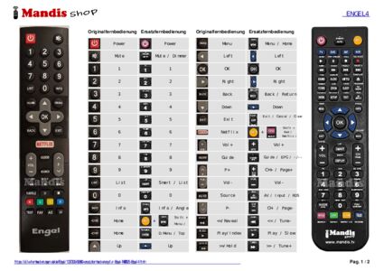 Ein Dokument ist enthalten, um die Verwendung der neuen Fernbedienung zu erleichtern, indem es die Tastenbelegung zeigt.