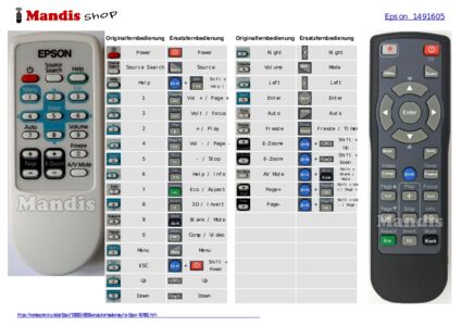 Home > Marken > Fernbedienungen Epson > Fernbedienung für Epson 1491605