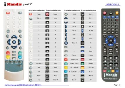 Ein Dokument ist enthalten, um die Verwendung der neuen Fernbedienung zu erleichtern, indem es die Tastenbelegung zeigt.