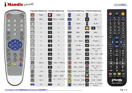 Ein Dokument ist enthalten, um die Verwendung der neuen Fernbedienung zu erleichtern, indem es die Tastenbelegung zeigt.
