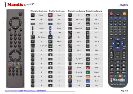 Diese Fernbedienung ersetzt Ihre RC1602 (20275655) in vollem Umfang und bietet alle Funktionen des Originals.