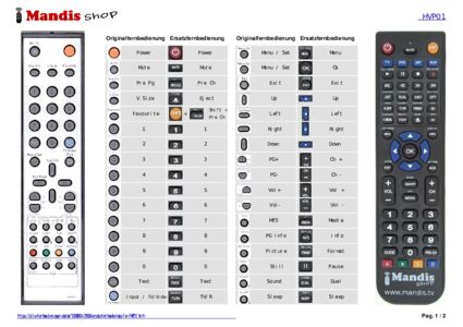 Ein Dokument ist enthalten, um die Verwendung der neuen Fernbedienung zu erleichtern, indem es die Tastenbelegung zeigt.