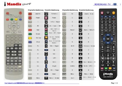 Ein Dokument ist enthalten, um die Verwendung der neuen Fernbedienung zu erleichtern, indem es die Tastenbelegung zeigt.