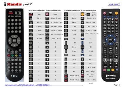 Ein Dokument ist enthalten, um die Verwendung der neuen Fernbedienung zu erleichtern, indem es die Tastenbelegung zeigt.