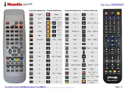 Ein Dokument ist enthalten, um die Verwendung der neuen Fernbedienung zu erleichtern, indem es die Tastenbelegung zeigt.