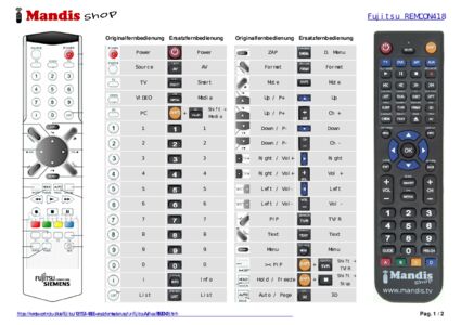 Ein Dokument ist enthalten, um die Verwendung der neuen Fernbedienung zu erleichtern, indem es die Tastenbelegung zeigt.