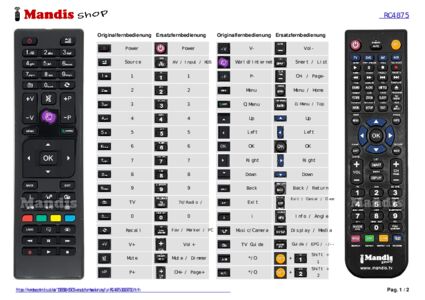 Ein Dokument ist enthalten, um die Verwendung der neuen Fernbedienung zu erleichtern, indem es die Tastenbelegung zeigt.