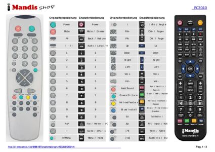 Diese Fernbedienung ersetzt Ihre RC 3040 (20123439) in vollem Umfang und bietet alle Funktionen des Originals.
