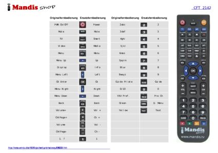 Ein Dokument ist enthalten, um die Verwendung der neuen Fernbedienung zu erleichtern, indem es die Tastenbelegung zeigt.