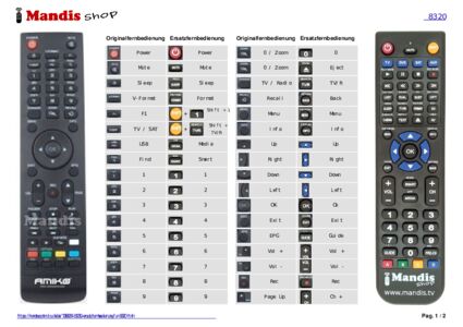 Ein Dokument ist enthalten, um die Verwendung der neuen Fernbedienung zu erleichtern, indem es die Tastenbelegung zeigt.