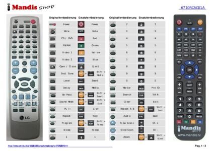 Ein Dokument ist enthalten, um die Verwendung der neuen Fernbedienung zu erleichtern, indem es die Tastenbelegung zeigt.
