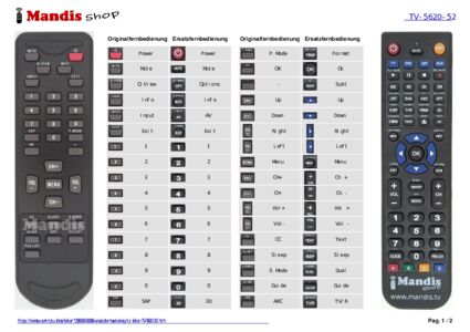 Diese Fernbedienung ersetzt Ihre TV-5620-52 in vollem Umfang und bietet alle Funktionen des Originals.