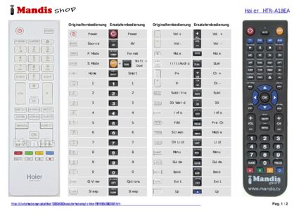 Ein Dokument ist enthalten, um die Verwendung der neuen Fernbedienung zu erleichtern, indem es die Tastenbelegung zeigt.