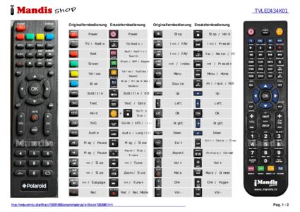 Ein Dokument ist enthalten, um die Verwendung der neuen Fernbedienung zu erleichtern, indem es die Tastenbelegung zeigt.