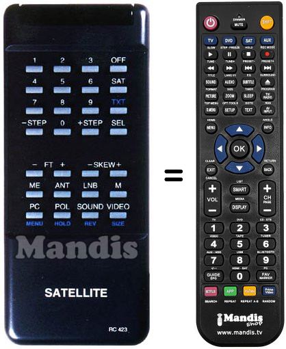 Die Fernbedienung ersetzt das Original RC423 in der Gesamtheit seiner Funktionen.
