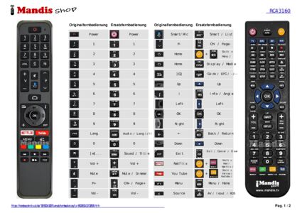 Im Folgenden zeigen wir Ihnen die Zuordnung jedes einzelnen Knopfes der Originalfernbedienung zu der Taste, die dieselbe Funktion auf der Ersatzfernbedienung ausführt. In einigen Fällen müssen Sie möglicherweise die UMSCHALT-Taste drücken, bevor Sie eine andere Taste drücken, um bestimmte Aktionen auszuführen. Diese zusätzlichen Funktionen werden oft wenig genutzt und dienen dazu, das Verständnis der Ersatzfernbedienung zu erleichtern oder weil die Originalfernbedienung mehr Tasten hat als das entsprechende Modell.