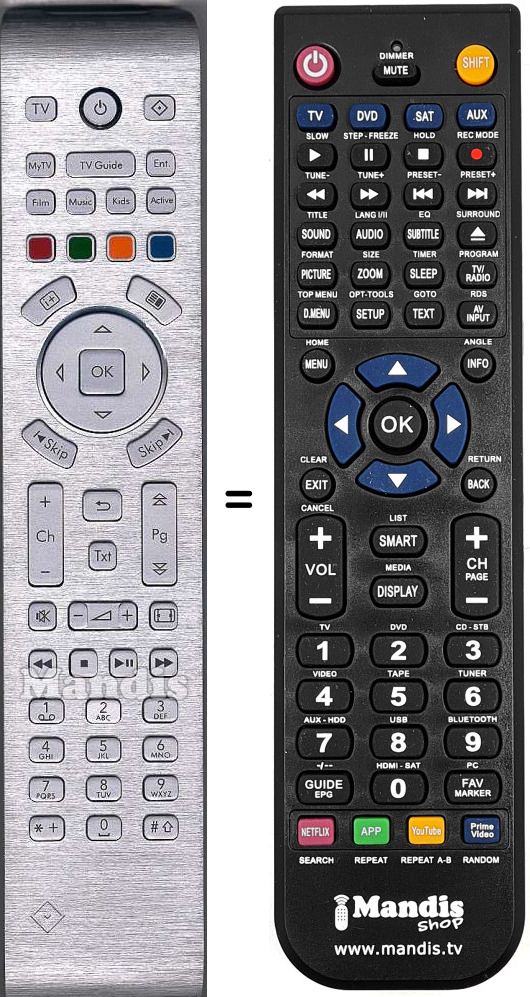 Es handelt sich jedoch nicht um eine Universalfernbedienung sondern um eine Fernbedienung die das Original ersetzt.