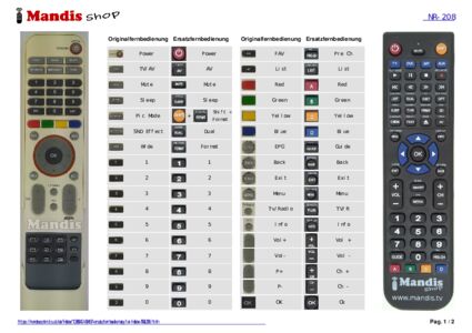 Ein Dokument ist enthalten, um die Verwendung der neuen Fernbedienung zu erleichtern, indem es die Tastenbelegung zeigt.