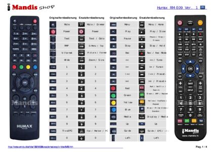Ein Dokument ist enthalten, um die Verwendung der neuen Fernbedienung zu erleichtern, indem es die Tastenbelegung zeigt.