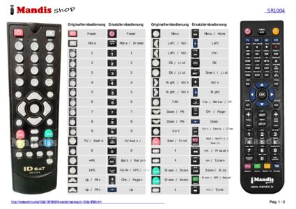 Ein Dokument ist enthalten, um die Verwendung der neuen Fernbedienung zu erleichtern, indem es die Tastenbelegung zeigt.