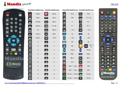 Ein Dokument ist enthalten, um die Verwendung der neuen Fernbedienung zu erleichtern, indem es die Tastenbelegung zeigt.
