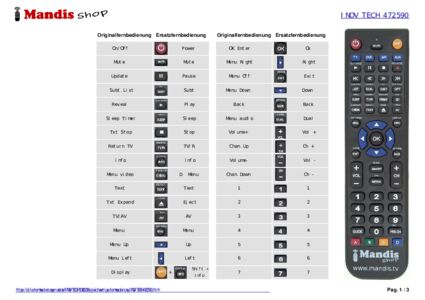 Ein Dokument ist enthalten, um die Verwendung der neuen Fernbedienung zu erleichtern, indem es die Tastenbelegung zeigt.