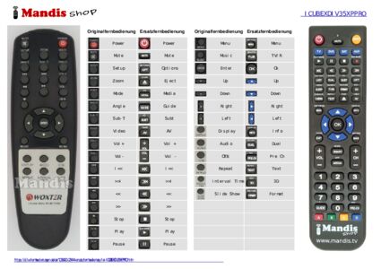 Ein Dokument ist enthalten, um die Verwendung der neuen Fernbedienung zu erleichtern, indem es die Tastenbelegung zeigt.